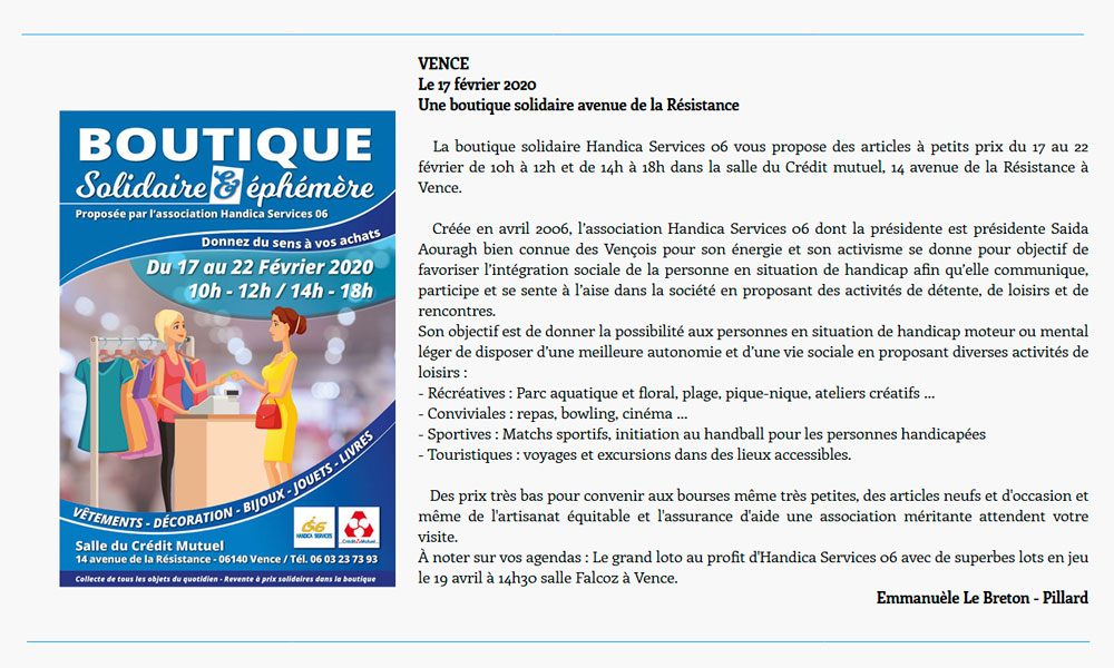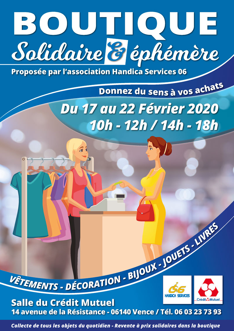 Ouverture de notre boutique solidaire éphémère ce lundi 17 février pour une semaine seulement.