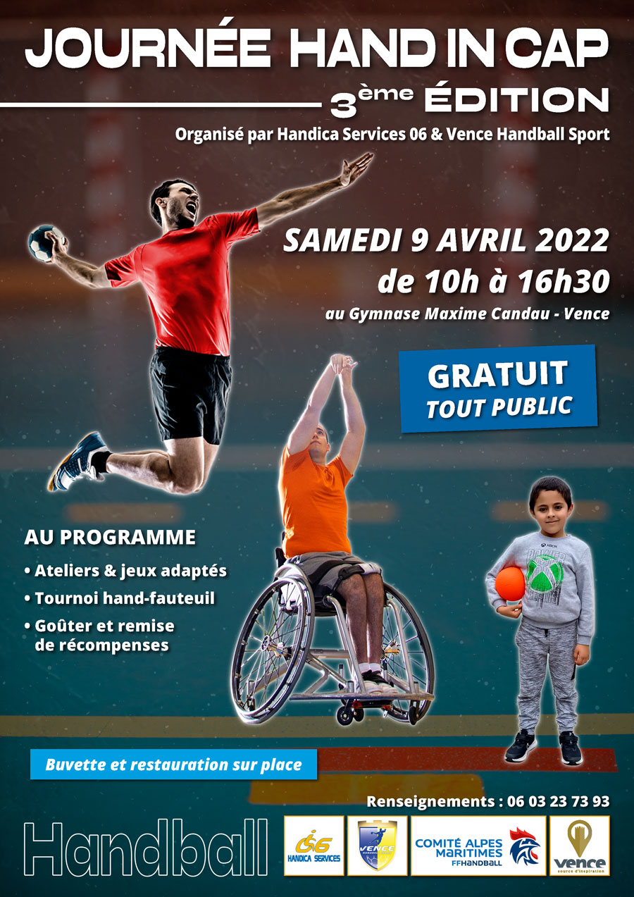 Avec le Vence Hand & le COMITE 06 HANDBALL nous sommes heureux de vous proposer la 3ème édition de notre manifestation "Hand In Cap" le samedi 9 avril prochain à Vence.