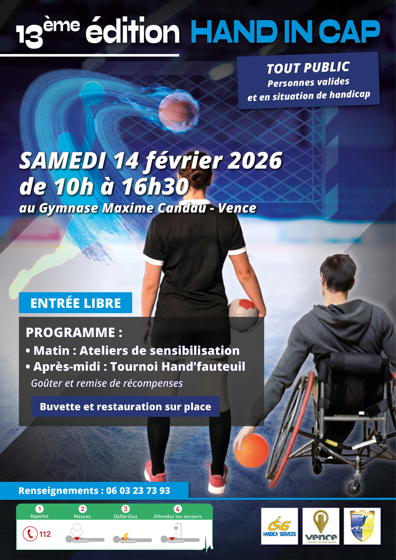 Handica Services 06 & le Vence Handball Sport vous invitent à participer à la 10ème édition de "HAND IN CAP" le samedi 8 février toute la journée ... "Lire la suite"